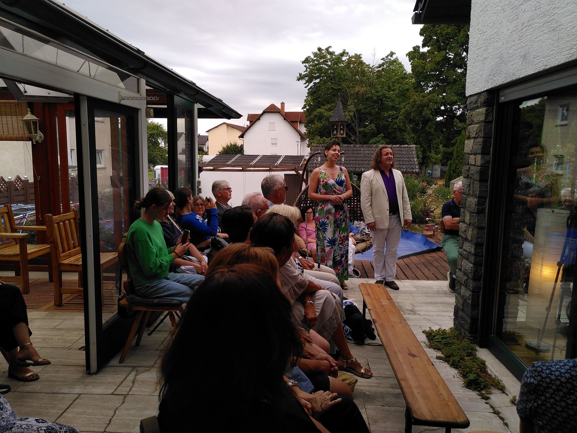 Am 23. Juli 2023 fand unser Sommer-Hauskonzert mit Arien, Duetten und Terzetten u.a. aus "Così fan tutte", "Der Favorit" und "Die Fledermaus" statt. Unterstützt von Ralf Emge (Tenor) und Kavin Alderman (Klavier) gestalteten Sandrine und Stella einen bunten Nachmittag vor "vollem Haus".